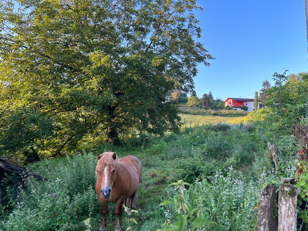 Dinner included a communal meal around 3 tables with at least 40 people where I was. Many faces were already familiar. Pasta with cheese, pork and potatoes, water and wine. After dinner, we ended at the communal hall in the albergue and shared lots of laughs. Particularly, an Italian man Vincenzo who shared a story (and evidence) of a Pyrenees horse showing off it’s rather impressive…member. I’m the youngest person at the table by 10 years, and the oldest is 60. I am happy to see and report that juvenile humor is alive and well among the Camino’s diverse population.
