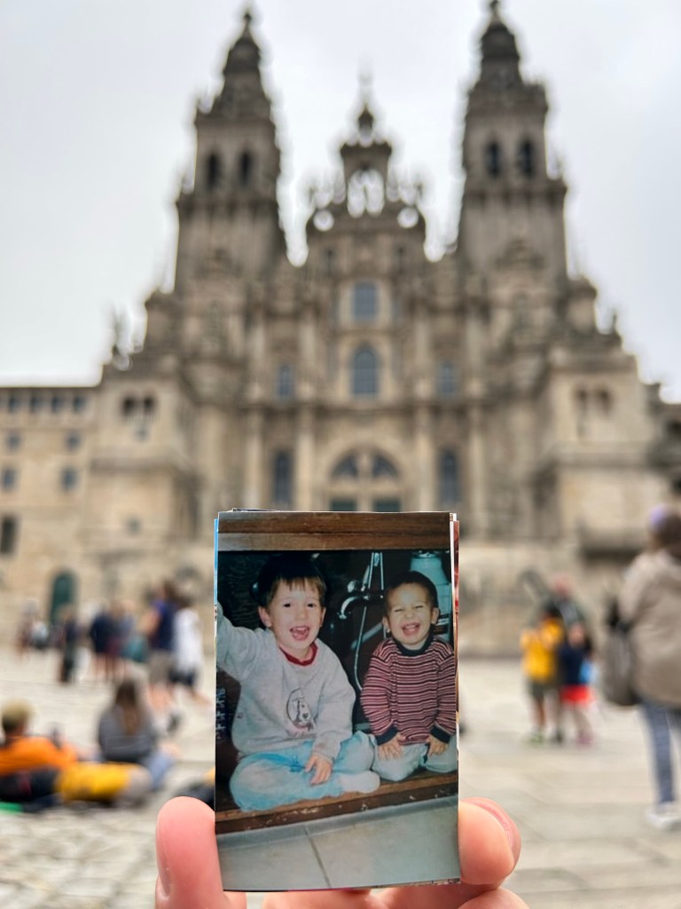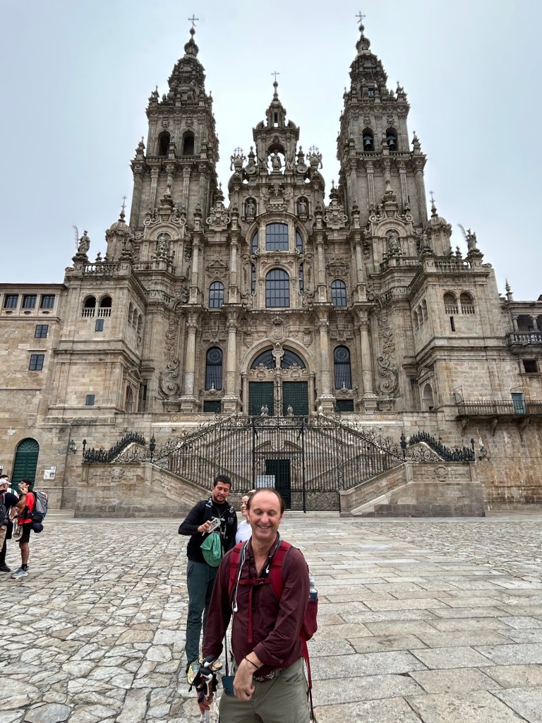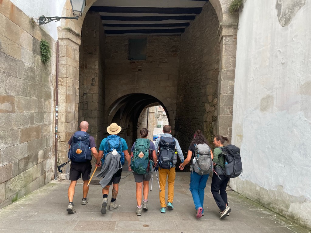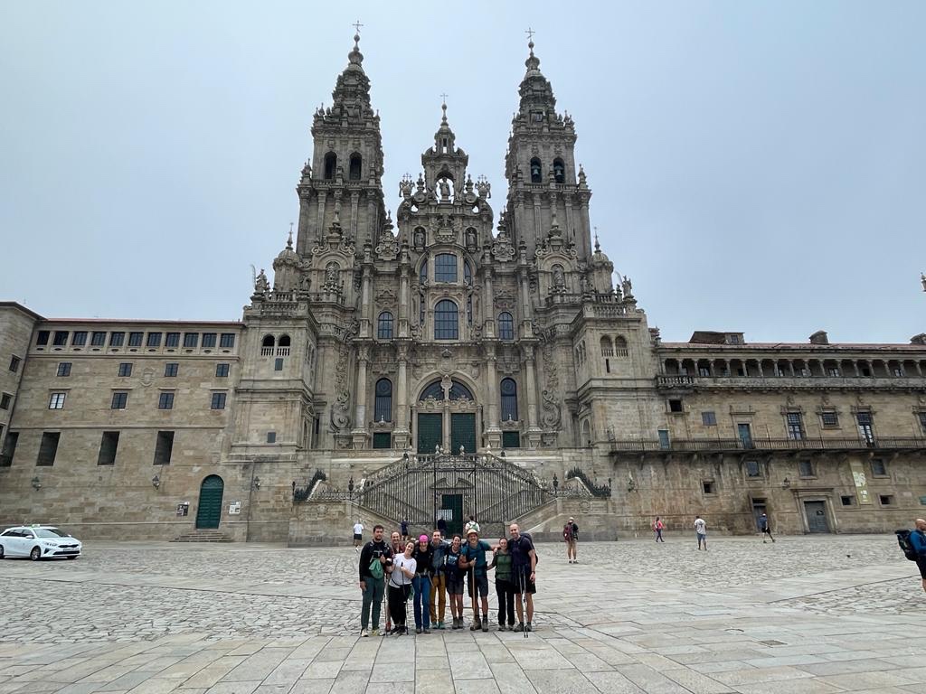 A few moments later we walked through the tunnel and saw the cobblestone square open up in front of us. In the moment, It didn’t really hit me that this was the end. We all yelled and raised our arms in sync, and were cheered by the approximately 25 people in the massive square at 9 am. Two by two we embraced each other, many in tears. We took all kinds of pictures for the next half hour and sat in the back of the square waiting for other groups of pilgrims, and the sun, to invade the square.
