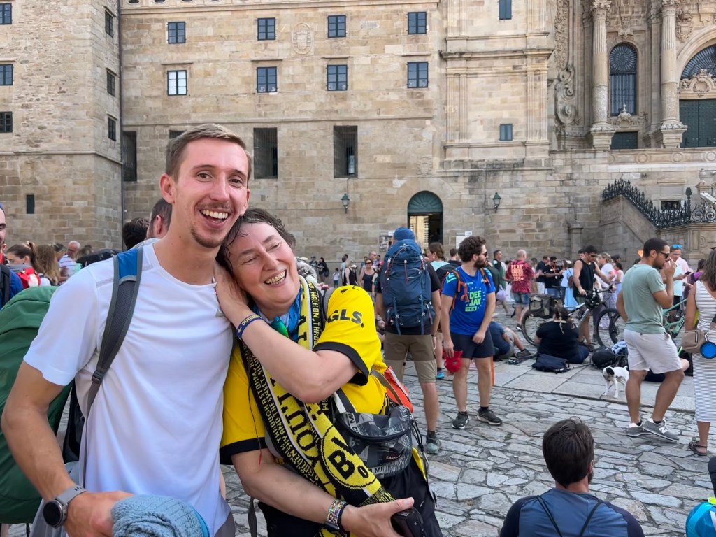 On the 22nd of September I returned to Santiago via bus. My goal was to watch multiple friends arrive in Santiago, and find many others who had already arrived. On the 23rd, I went to the cathedral after a quick breakfast at 8:30 am. Géonne, Helene, Tina, Sabrina, Els, Brad, and Leon were some of the people I was anticipating. The sky starting to get it’s color over the cathedral was quite a sight.