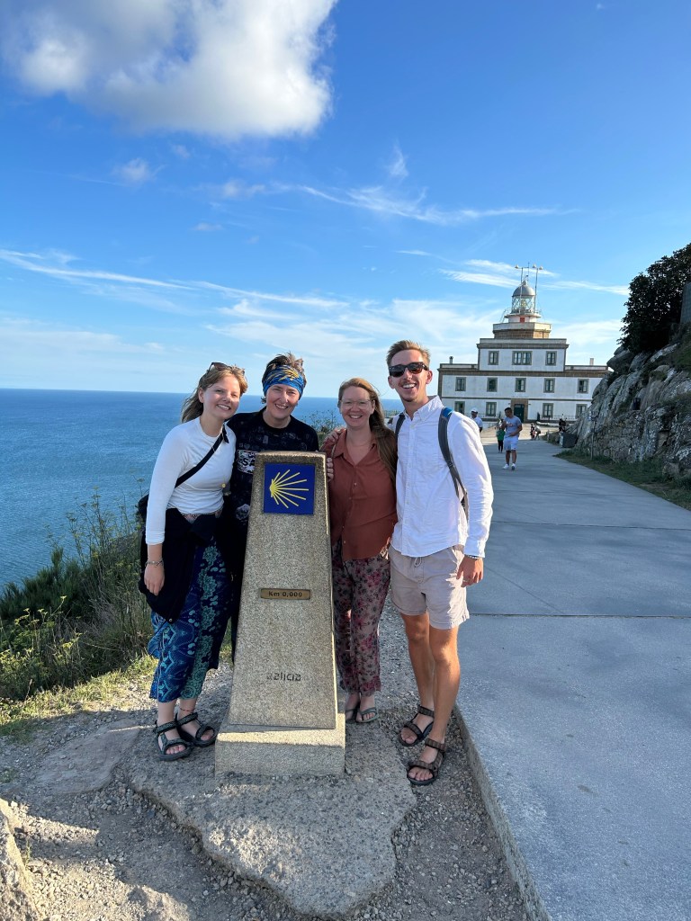 When I was walking with Géonne after we left Leon, we ran into and met Tina who had just started her Camino. We learned that we were the first people she met on the camino as she asked me to take a photo of her. We spent that night all in the same hostel and shared a beer and lots of conversation. Unfortunately I didn’t walk with her much more after that, but Géonne ended up seeing her on multiple other occasions. In the days leading up to their arrival in Santiago, I learned that Tina would take Géonne in her red camper van to Finisterre, and there would be an extra seat for me. Also to join would be Patricia, whose partner is walking to Finisterre but she doesn’t want to. At first, I had hoped to do some walking on the Finisterre-Muxia-Santiago loop, but thought I could also walk later if I still wanted to. It would probably be best to give my body a few more days to recover anyways.